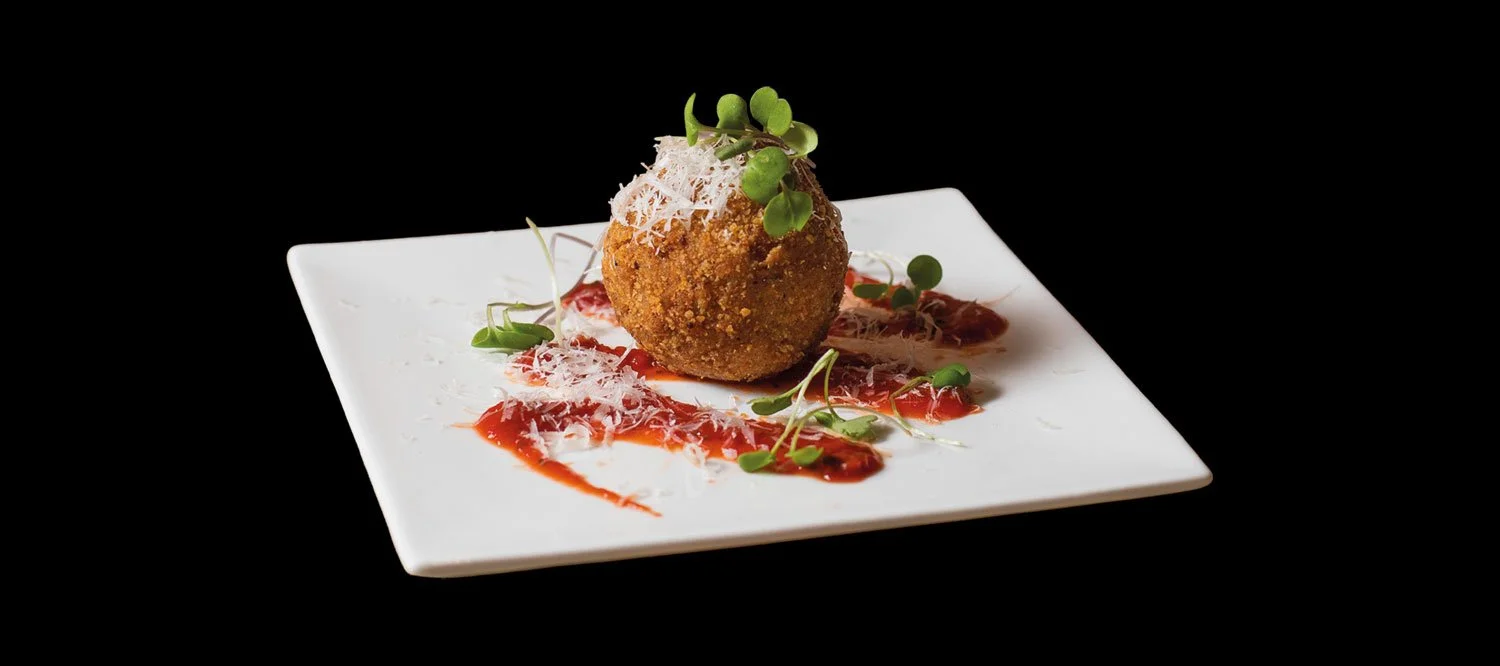 Kullan rapeaksi paistettu risottopallo, jonka sisältä paljastuu samettinen, parmesaanilla rikastettu riisi ja sulava mozzarella. Tarjoillaan täyteläisen tomaattikastikkeen, tuoreen basilikan ja kevyen sitruunavivahteen kanssa.