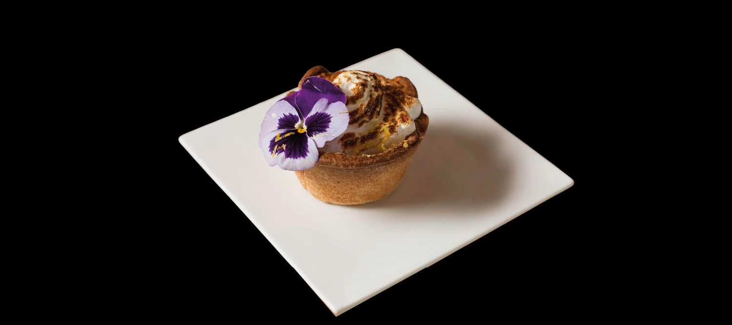 Rapea tartalettipohja, raikas sitruunatahna ja kevyesti paahdettu marenki (L)